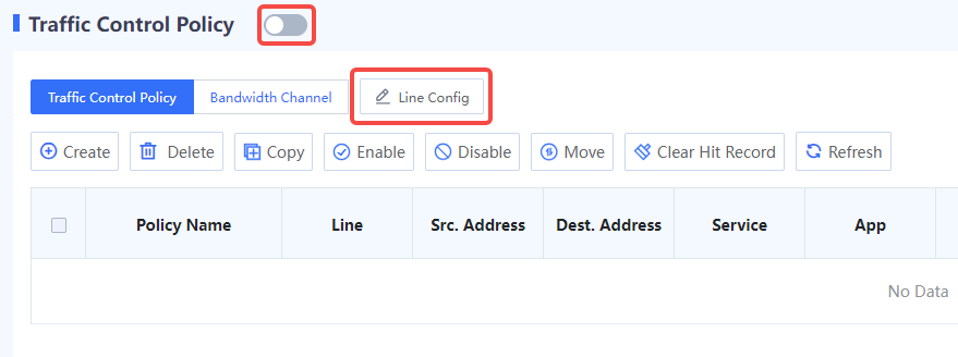 Trafik Kontrol Politikasını Devre Dışı Bırakın ve Hat Yapılandırmasını Ayarlayın