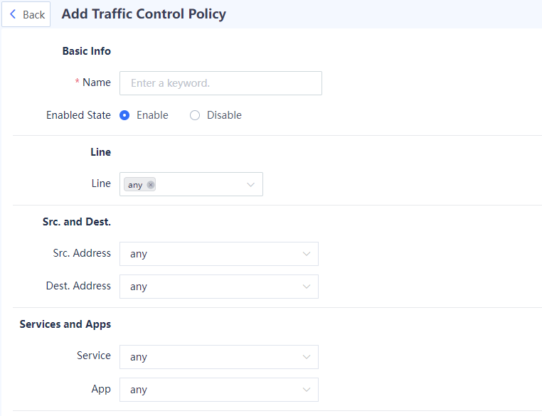 Trafik kontrolü, bir ruijie firewall’ un kullanıcı trafiğini kaynak ve hedef adreslere, hizmetlere, uygulamalara, kullanıcılara ve kullanıcı gruplarına göre doğru bir şekilde yönetmesini ve kontrol etmesini sağlar.