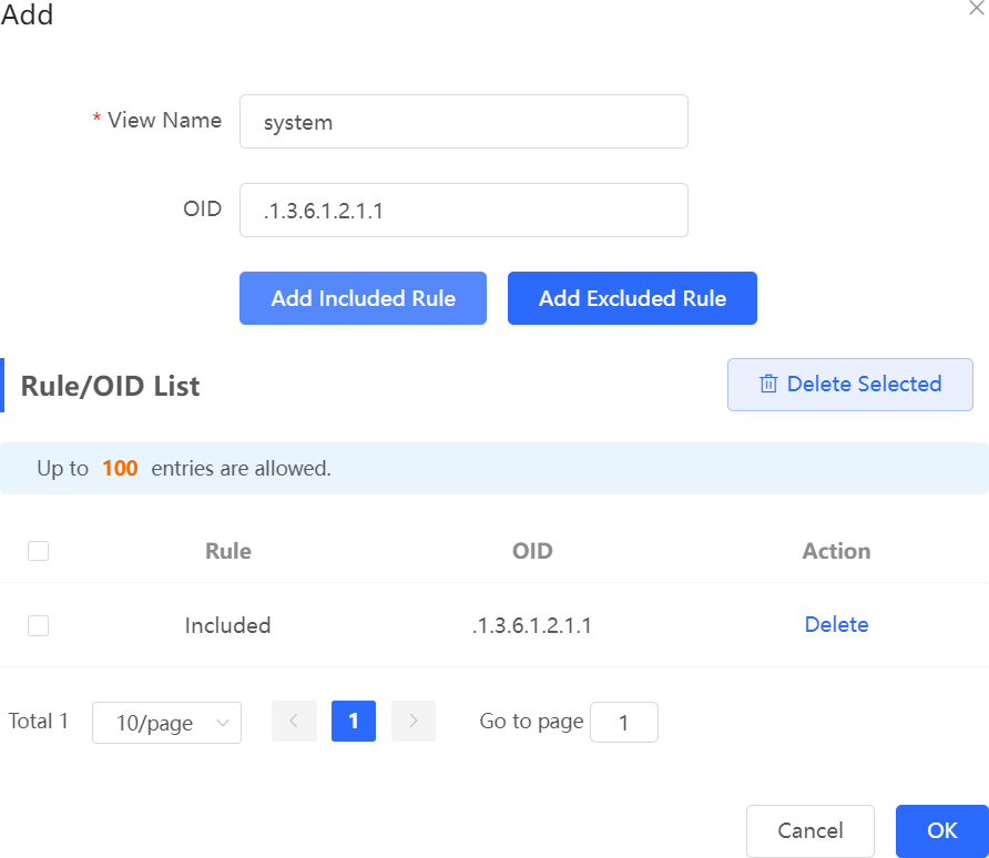 Dahil edilen kural: OID .1.3.6.1.2.1.1'dir ve özel görünüm adı "system "dir. |
